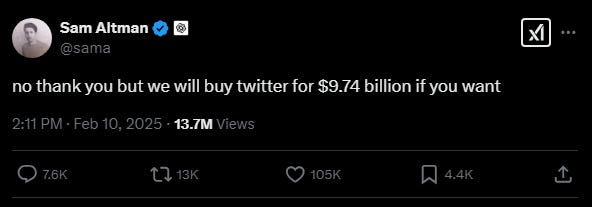 Headline: “Elon Musk-Led Group Makes $97.4 Billion Bid for Control of OpenAI”